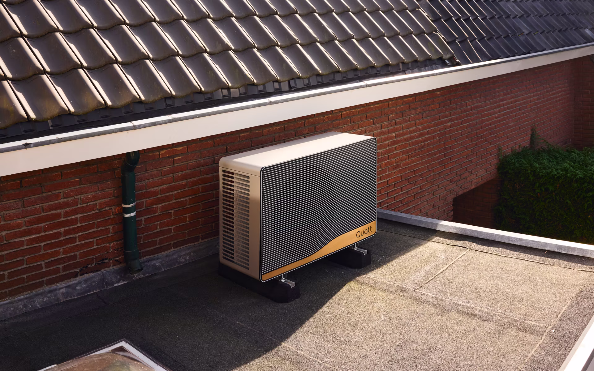 Quatt Hybrid wordt buitenshuis geplaatst, dus hier heb je binnen geen ruimte voor nodig. Er zijn verschillende opties qua plaatsing. Je kan de warmtepomp bijvoorbeeld ook op een plat dak plaatsen.