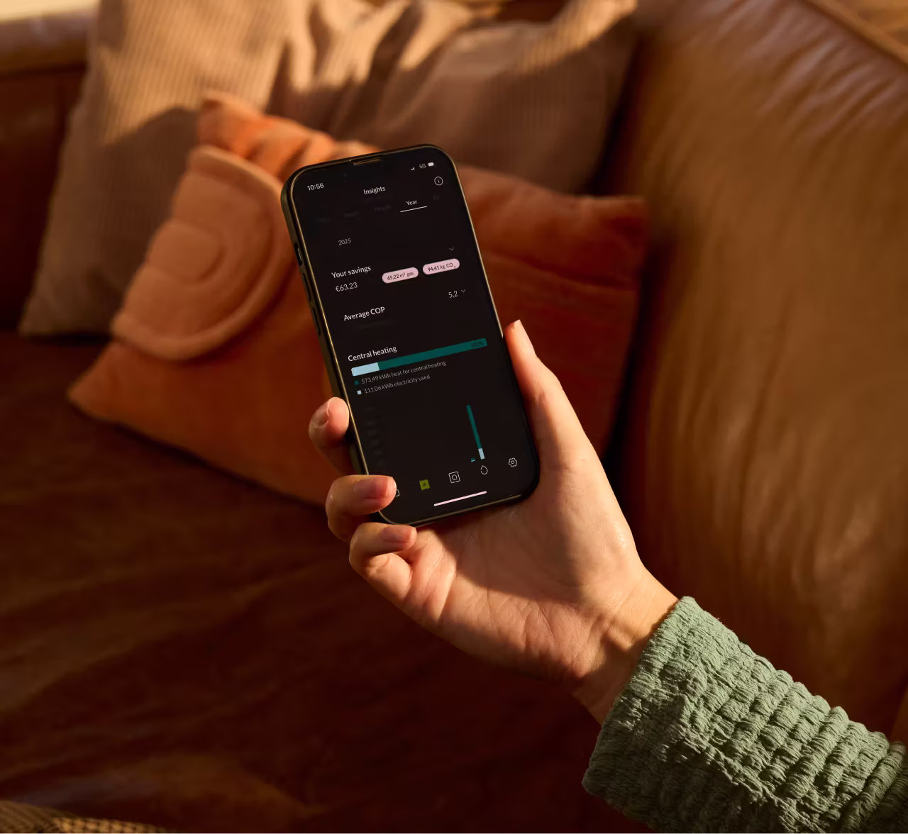 Bekijk je besparingen en stel je geluidsniveau in.